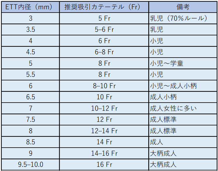 どちらにしても、気管チューブ(内径)よりも細い気管吸引チューブを使用することが重要です。