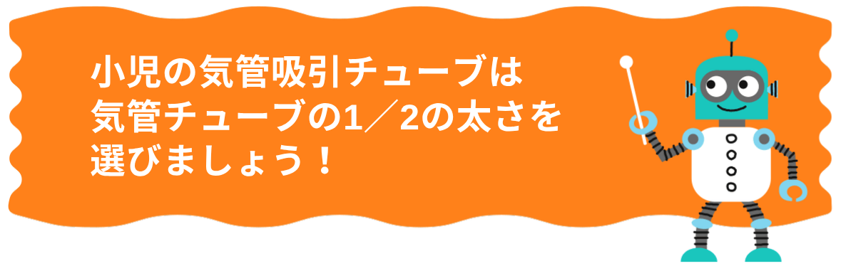 分泌物を吸引しにくい小児では、できるだけ太いサイズを使用するほうが、気管吸引チューブの抵抗が低いため、吸引しやすくなると考えられます。