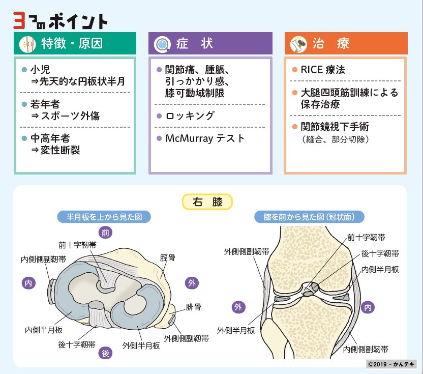 1分間でコレだけは覚えるコレだけシート… #608|半月板損傷 2025/11/08 かんテキ 整形外科 1分間でコレだけは覚えるコレだけシート meniscal injury------------------------荷重がかかった状態で、膝関節を強くひねる動作(内旋や外旋)が加わって起こる損傷。診断は徒手テストとMRI が有用 ▼この記事が載っている書籍はこちら