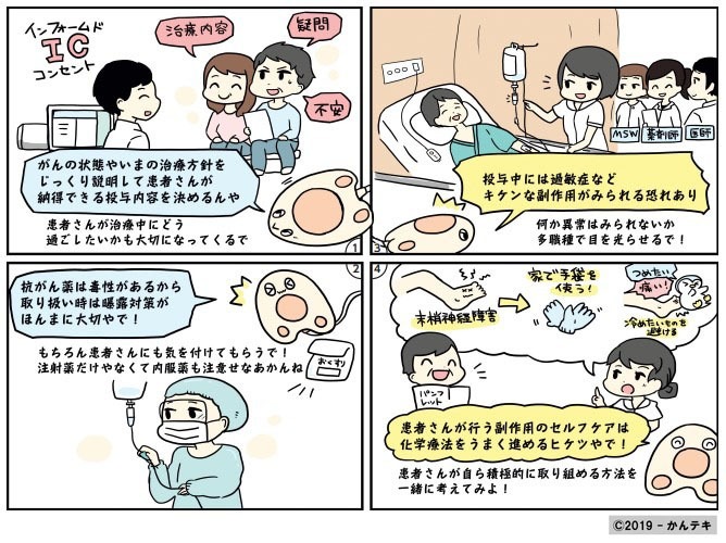 抗がん薬によって、がん細胞の維持・縮小効果を期待して、がんの治癒もしくは症状緩和や延命を目指す。細胞傷害性抗がん薬のほかに、分子標的薬、ホルモン療法薬、免疫チェックポイント阻害薬があり、これらの薬を組み合わせて治療する。