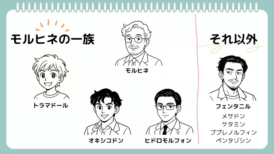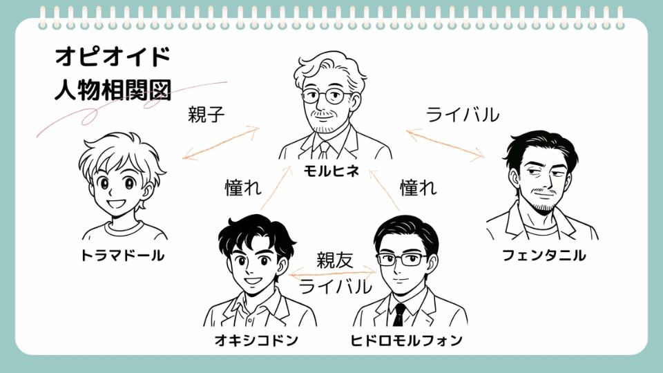 オピオイド擬人化してみました(タップして拡大↑)