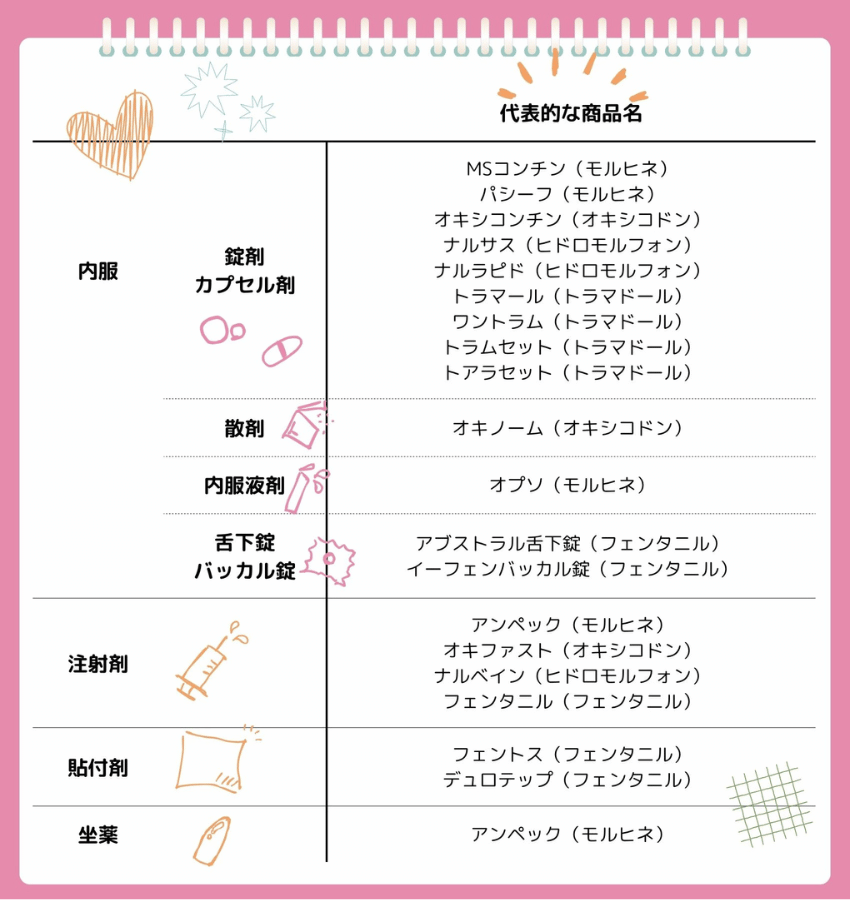 剤形ごとのオピオイド一覧(タップして拡大↑)