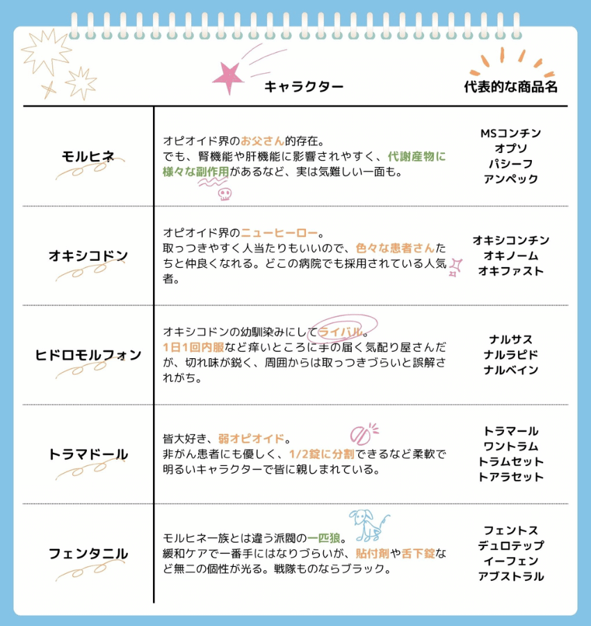 オピオイドのキャラクター(タップして拡大↑)