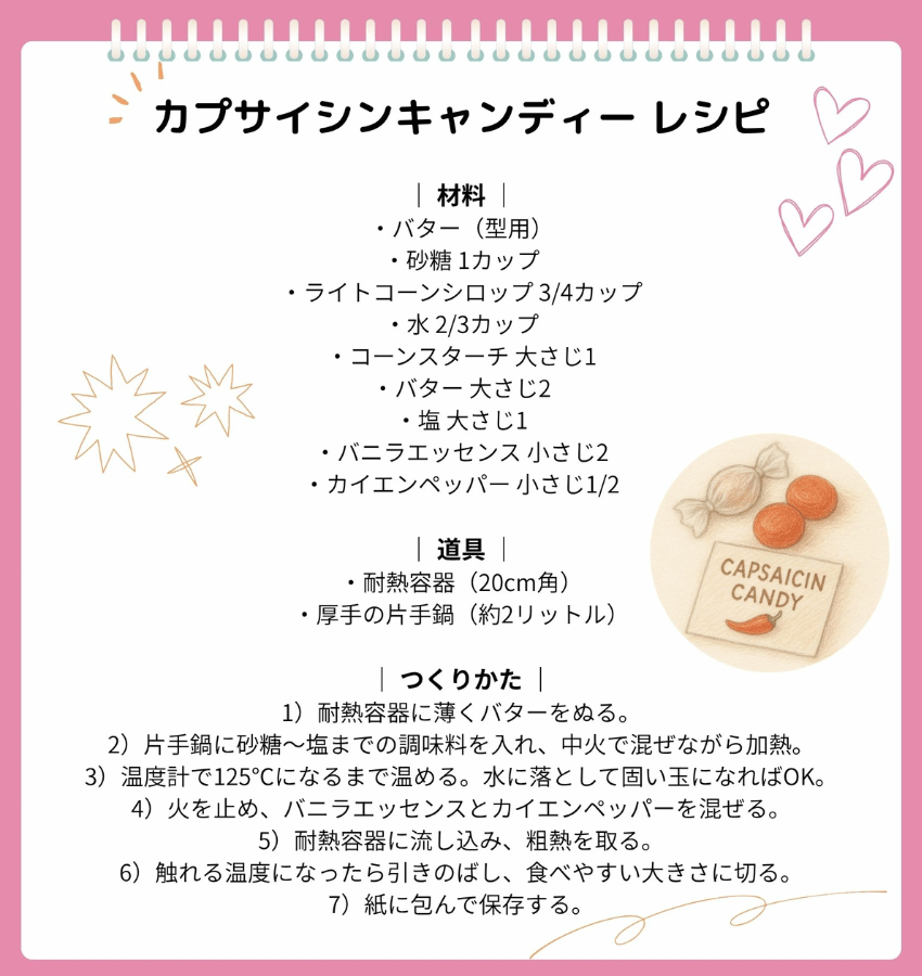 おうちで簡単! カプサイシンキャンディーレシピ(タップして拡大↑)