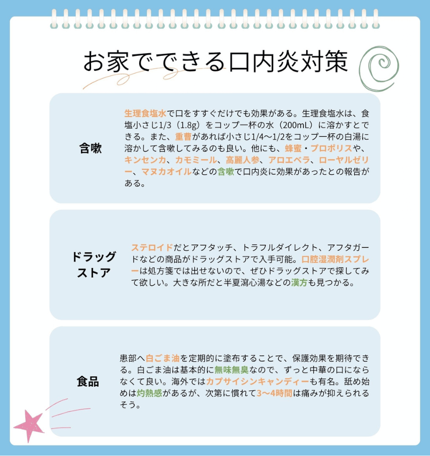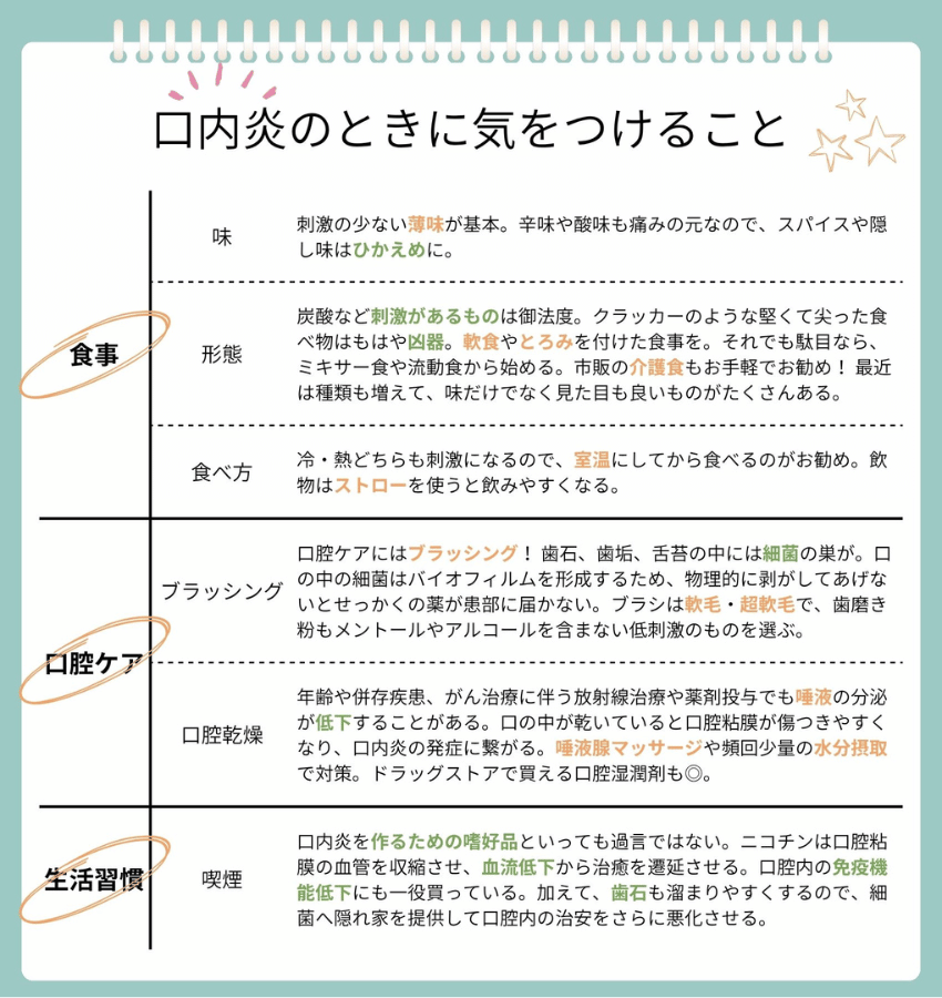 口内炎時の生活習慣の工夫(タップして拡大↑)