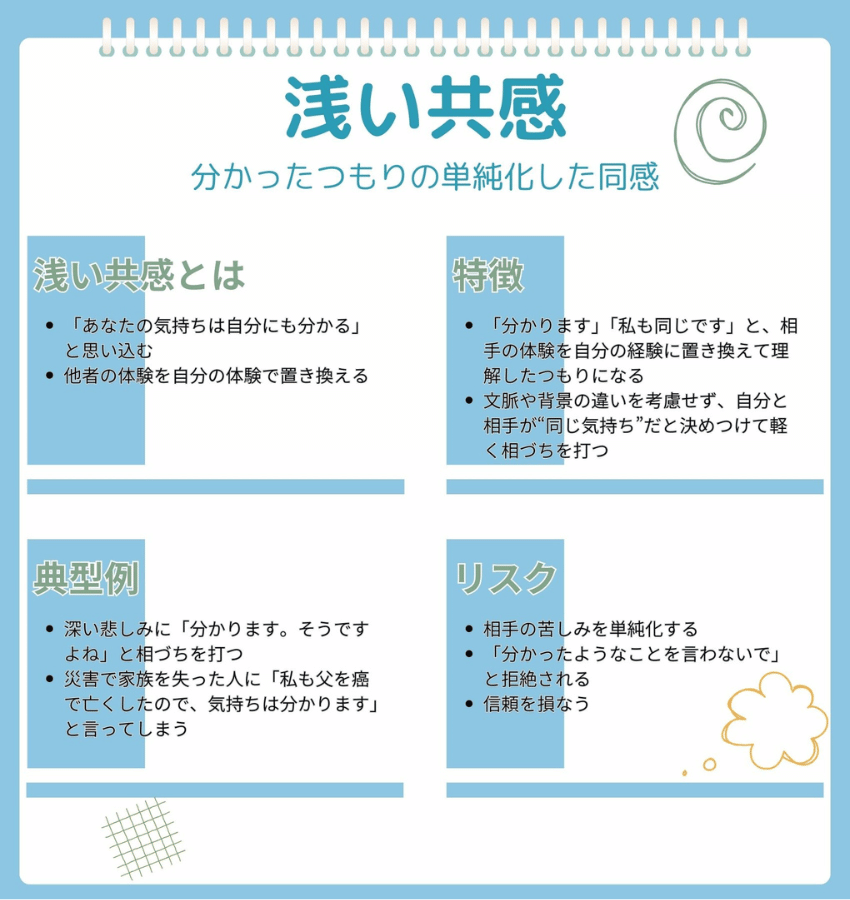 浅い共感=「相手と自分は同じ」と考える、分かったつもりの単純化した同感