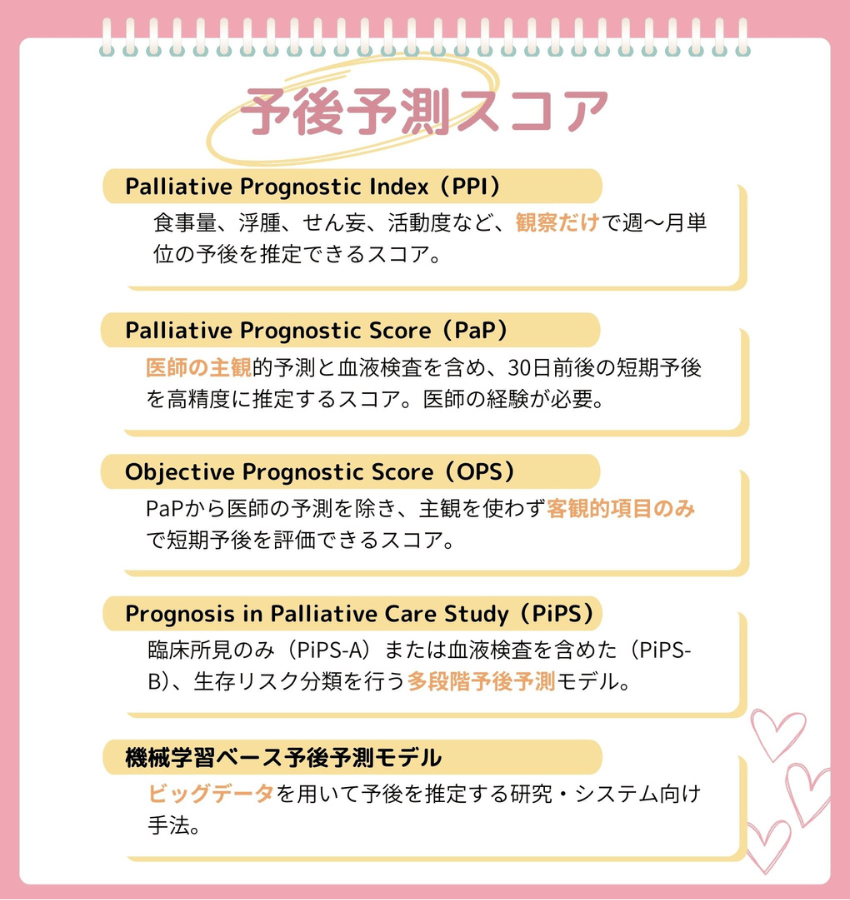 4)Uneno Y, et al.: Prognosis Prediction Models and their Clinical Utility in Palliative Care. In: Palliative Care. IntechOpen; 2017. doi: 10.5772/INTECHOPEN.69663.