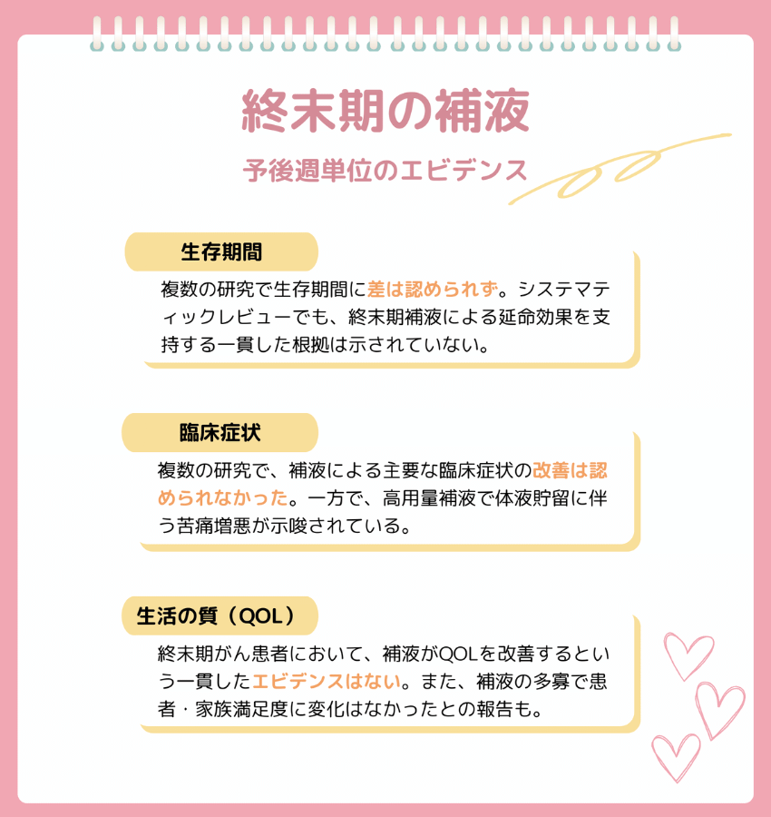 終末期の補液 予後週単位のエビデンス(タップして拡大↑)